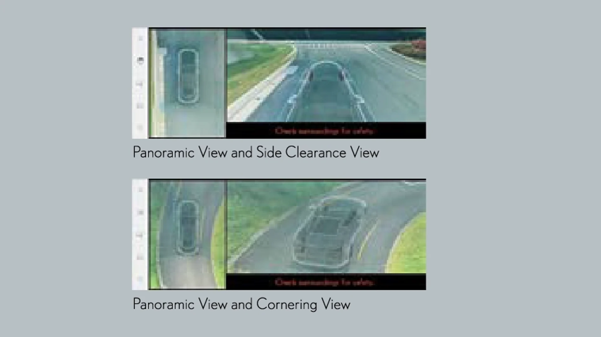 To help check areas surrounding the vehicles that are difficult to see from the driver’s seat, the system shows a bird’s-eye view of the vehicle in real time.