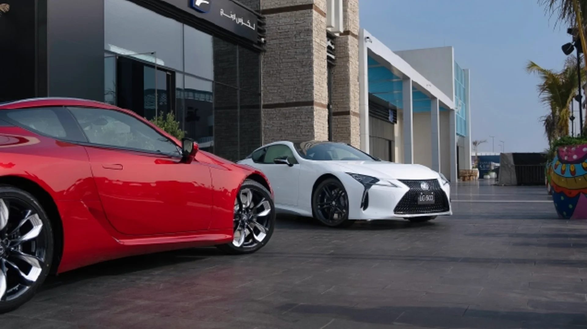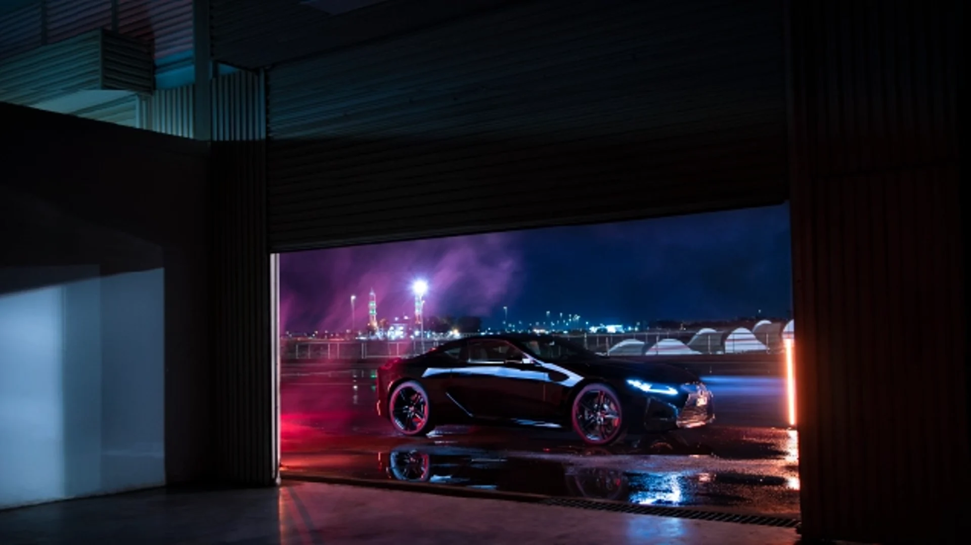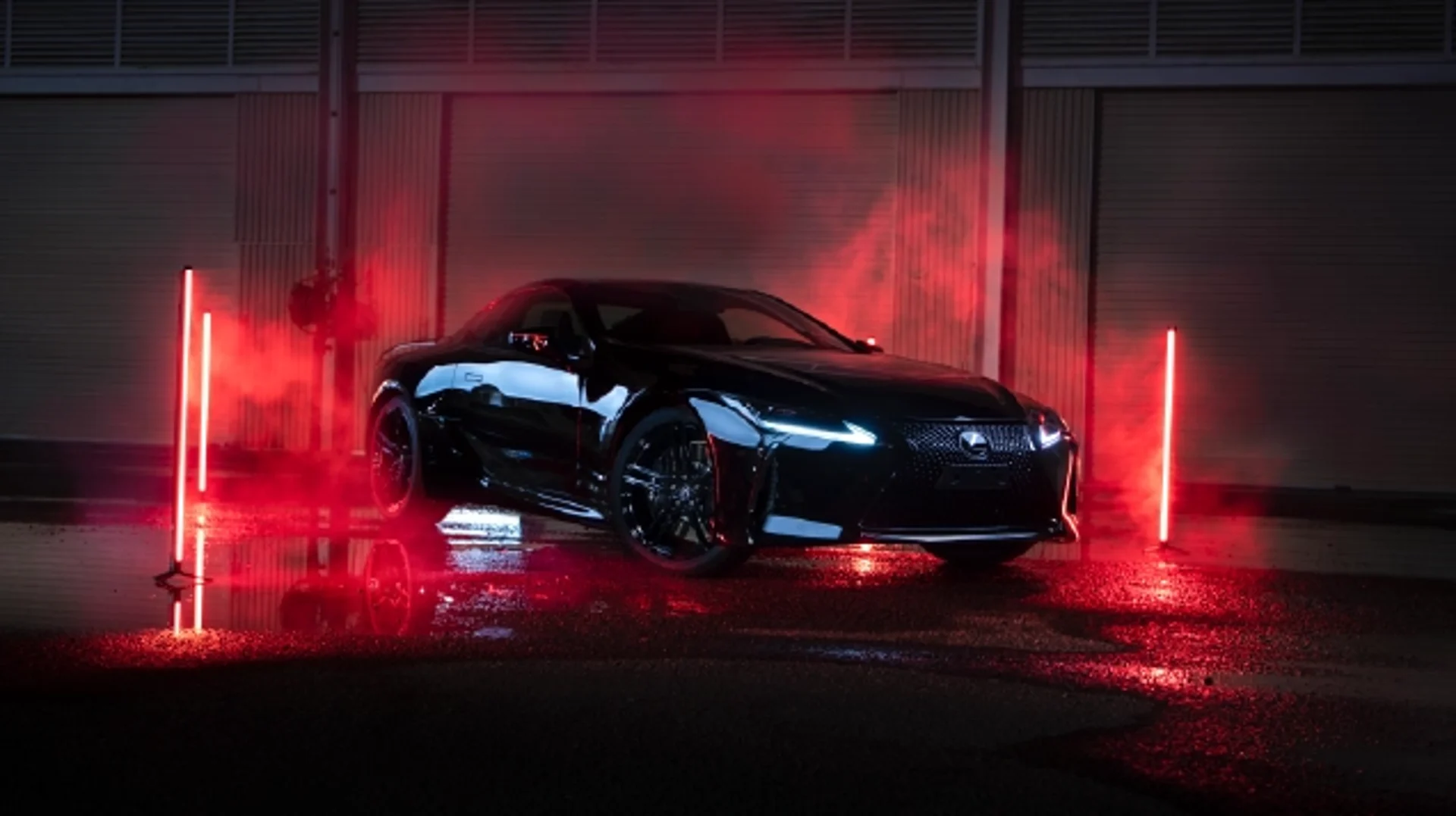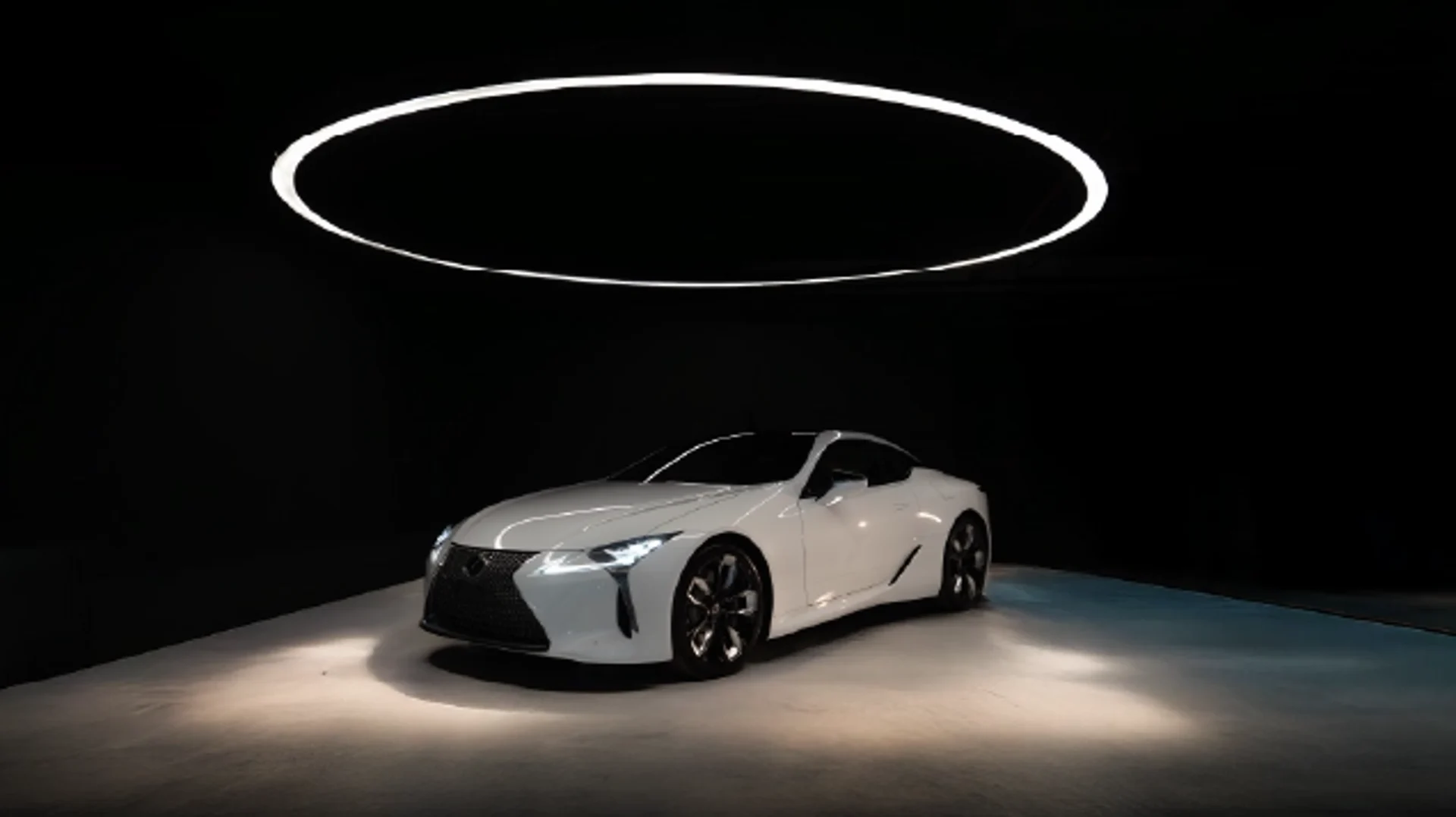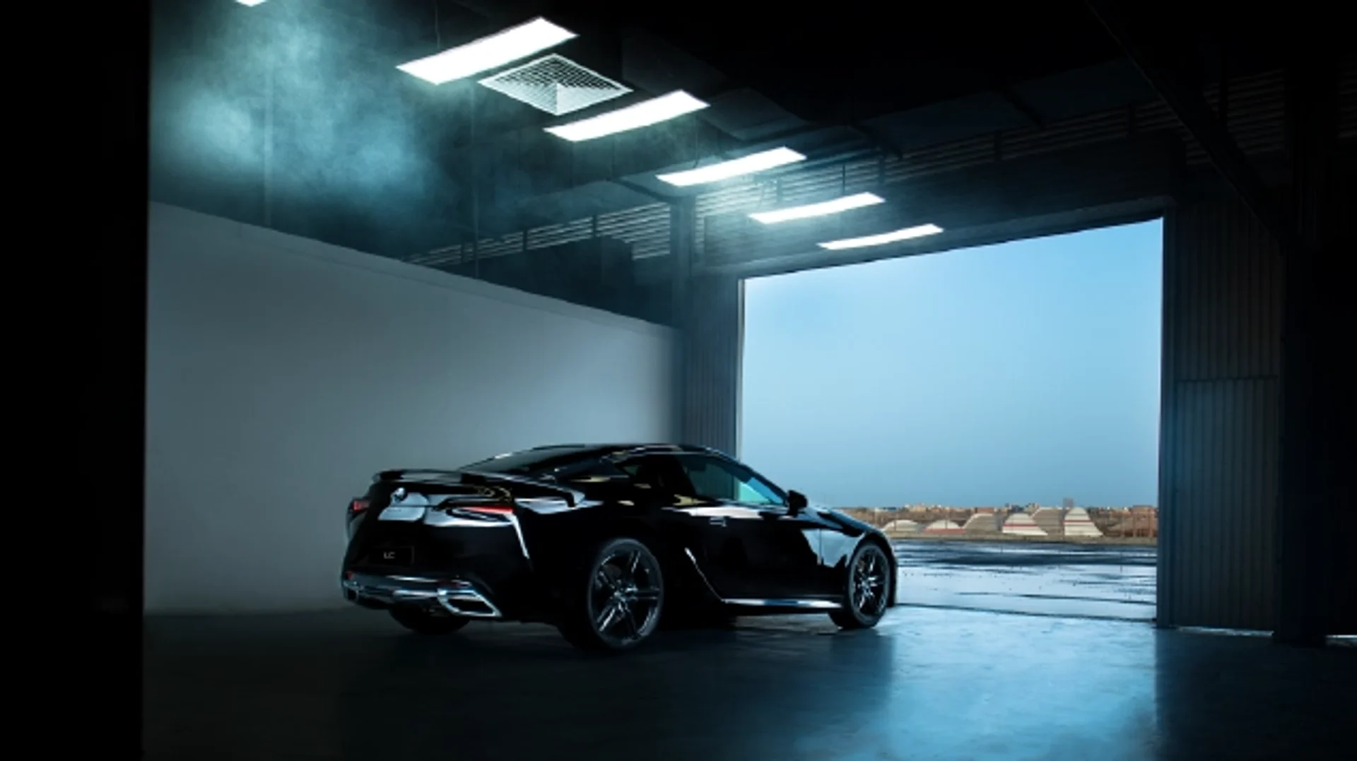 The spindle theme of the rear design emphasizes the LC’s powerful stance and low center of gravity with a distinctive form that flows around the license plate, and in the shape and position of the muffler baffles and diffusers. The edge of the garnish connecting the muffler baffles smooths airflow over the bumper, further enhancing aerodynamic